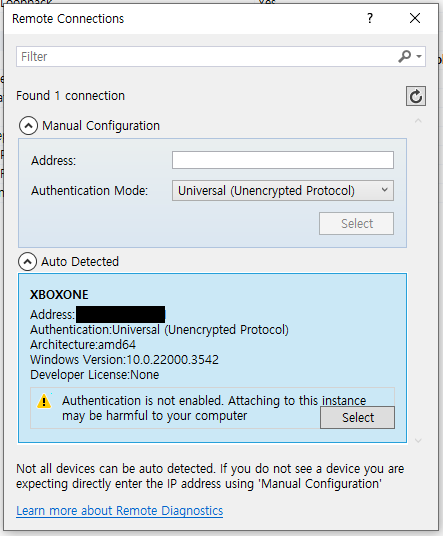 Remote Debugger 로 Xbox 에서 앱을 실행시키려면 Xbox 와 PC 가 같은 로컬 네트워크에 연결되어 있어야 한다.